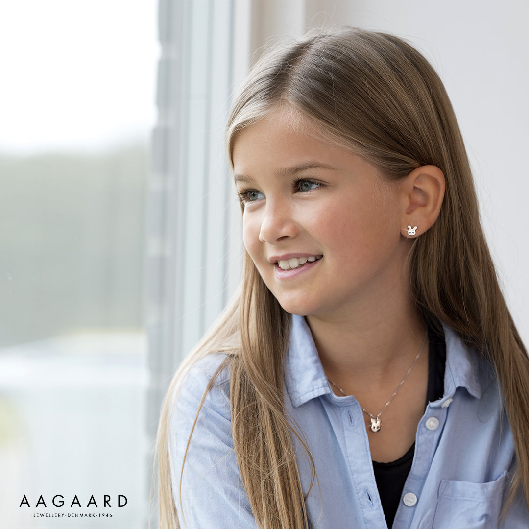 Oplev magien i Kids Aagaards søde sølvkaninvedhæng! Dette charmerende smykke er perfekt til små dyreelskere. Håndlavet i førsteklasses sølv, udstråler det en tidløs elegance og kvalitet. Kaninens detaljerede design fanger øjet med sin lethed og legende udtryk. Et ideelt gavevalg til både fødselsdage og specielle lejligheder. Bær dette vedhæng som et kært symbol på barnets legesyge og glæde. Skab uforglemmelige øjeblikke med dette unikke kaninvedhæng fra Kids Aagaard. Med 38 cm kæde.