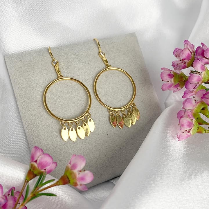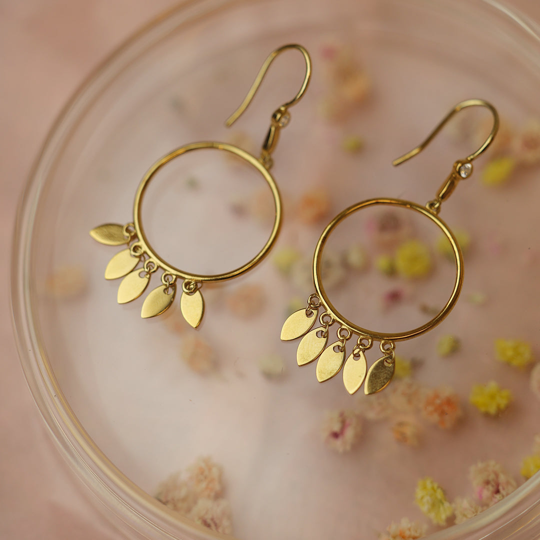 Ørehænger Dancing Leafs Cubic Zirkonia Forgyldt Sterling Sølv