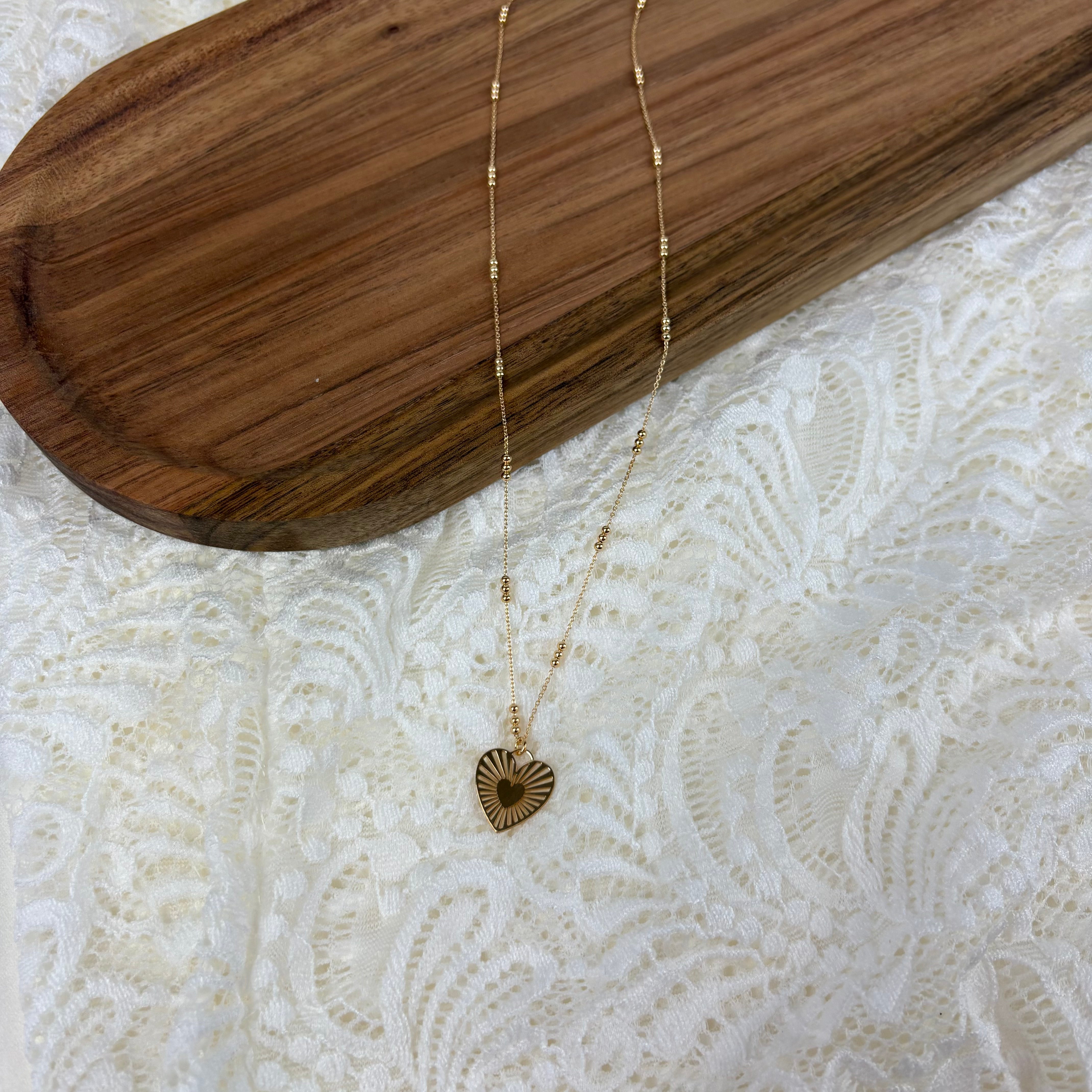 Halskæde med Vedhæng Hjerte Forgyldt Sterling Sølv
