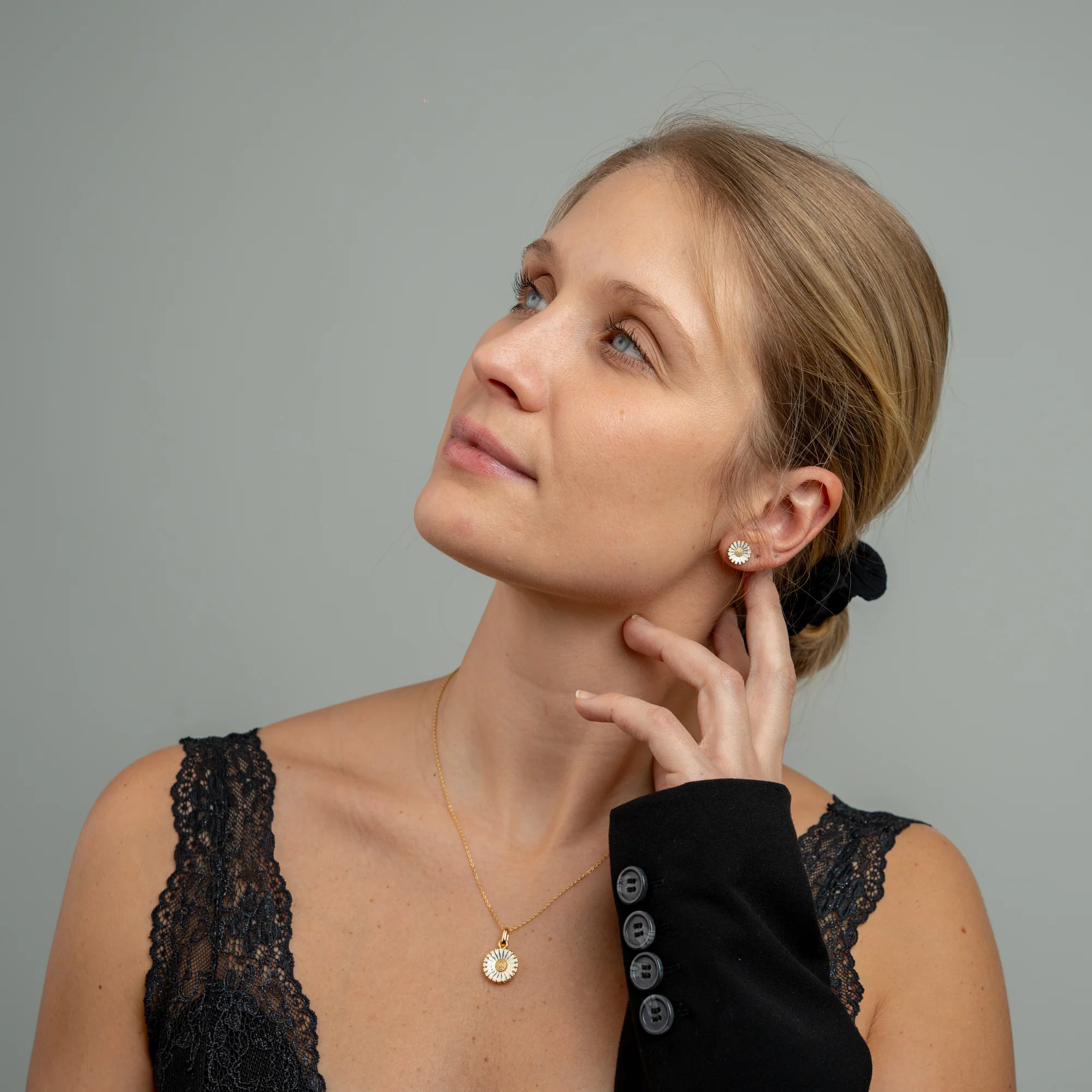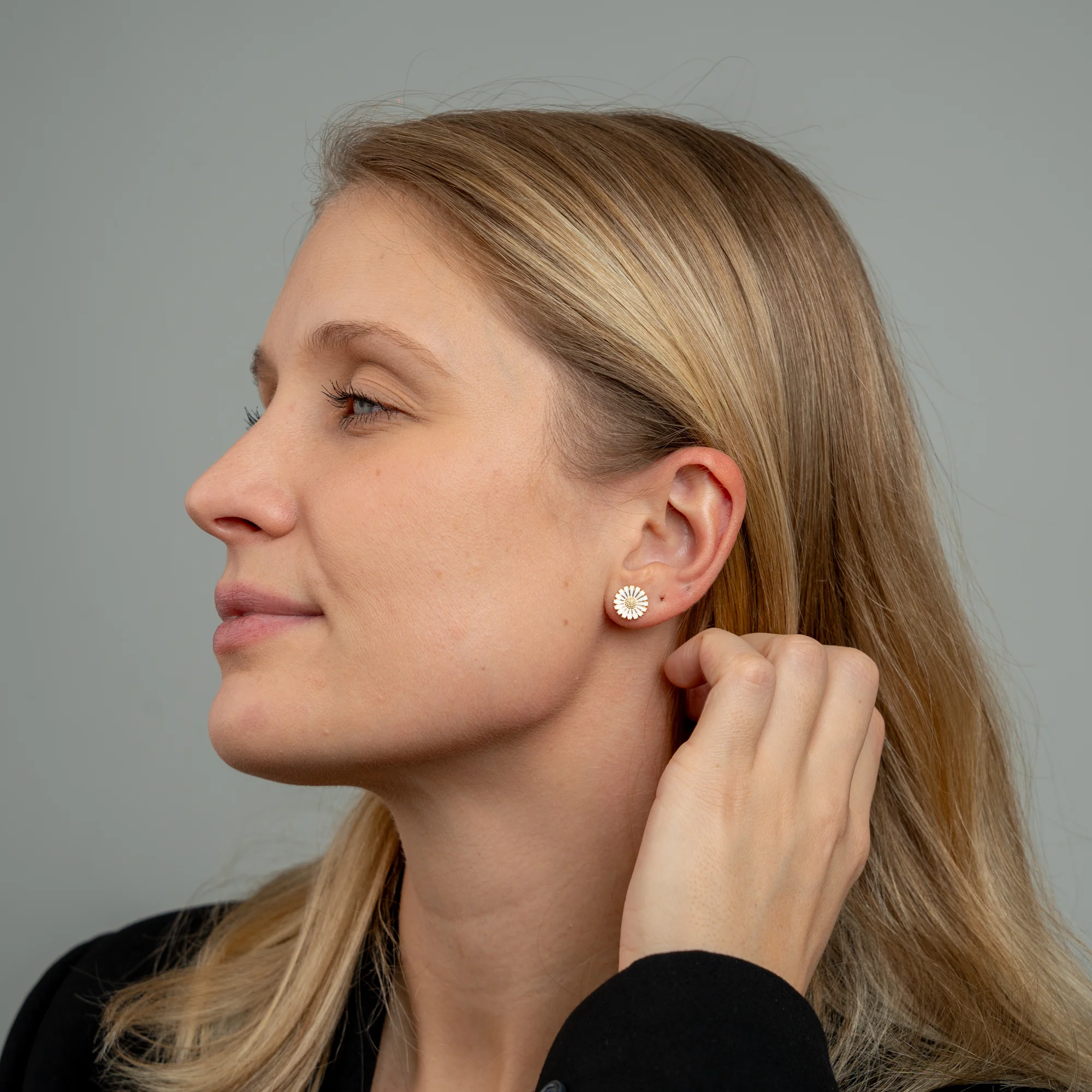 Et raffineret smykkesæt inspireret af den ikoniske marguerit - tidløs elegance med et strejf af nordisk natur. Vedhæng og ørestikker er sirligt udformet med sans for detaljen og emmer af diskret luksus. Smykkesættet passer lige så godt til denim og læder som til sommerkjoler og storbydage.