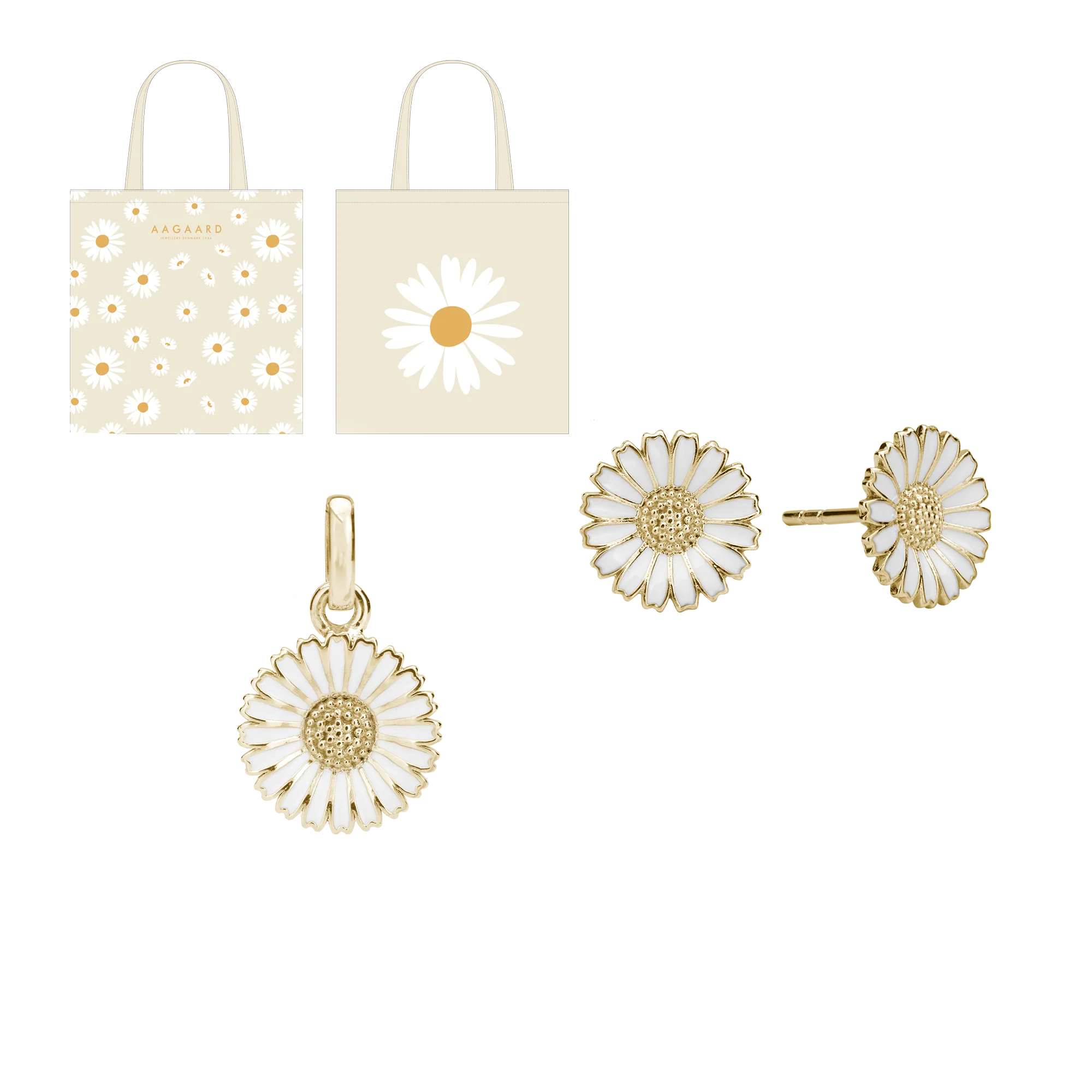 Marguerit Sæt Vedhæng Ørestikker Softbag Forgyldt Sterling Sølv