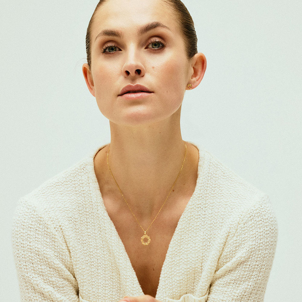 Halskæde Blomsterkrans 8 Karat Guld Forgyldt Sterling Sølv Kæde 45 cm