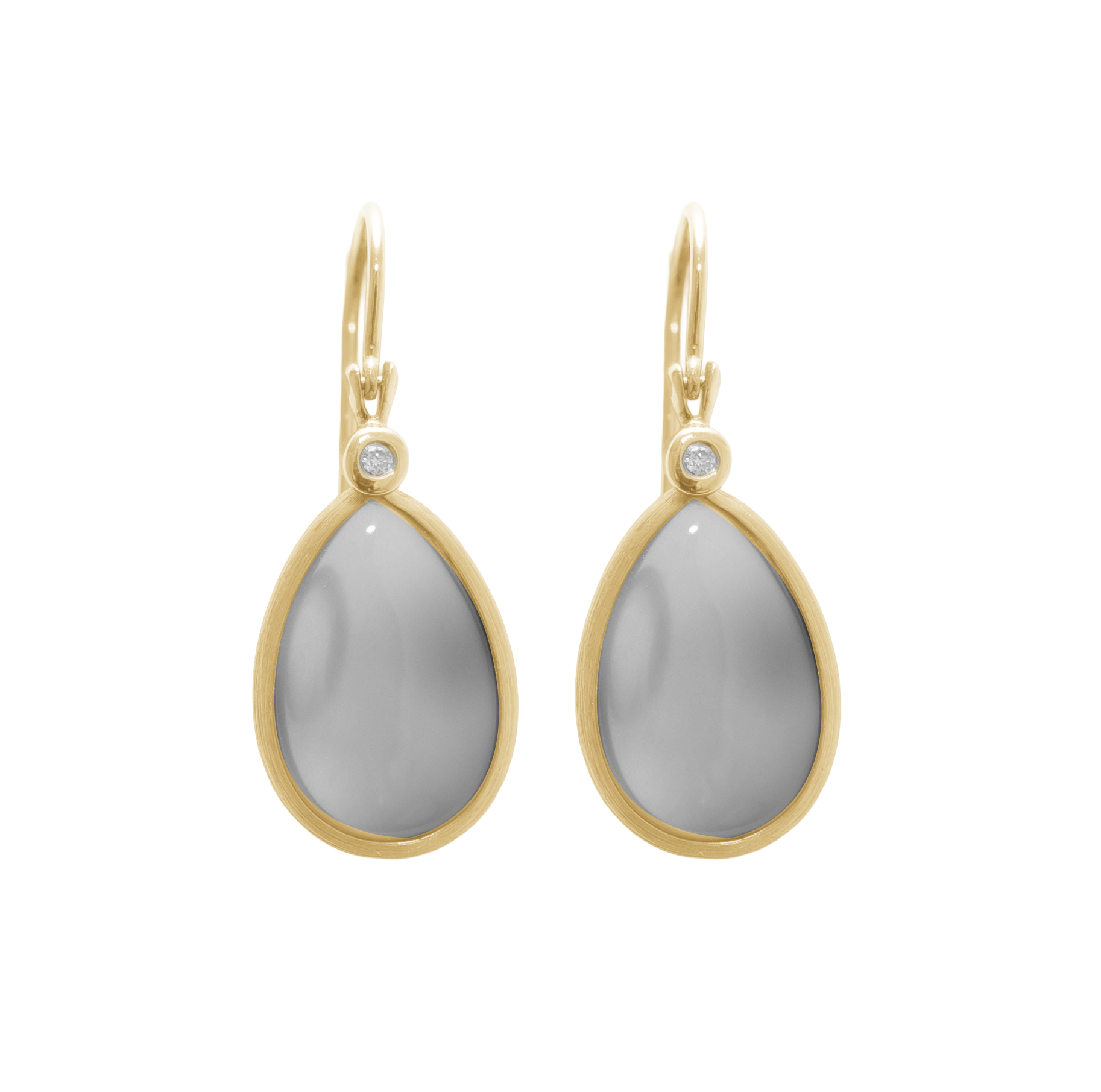 Hænge Øreringe med Grå Månesten og 0,02 ct W/SI Diamant