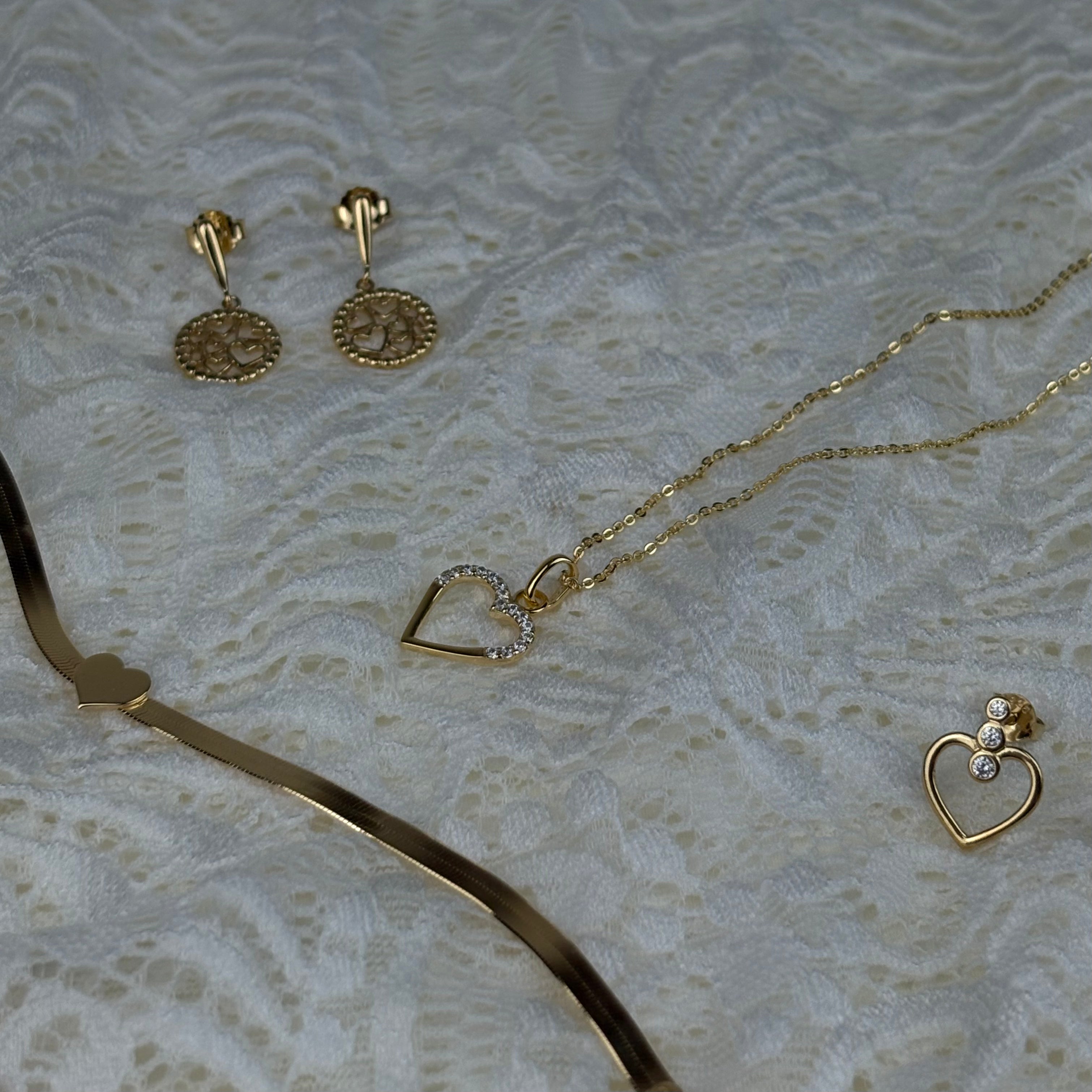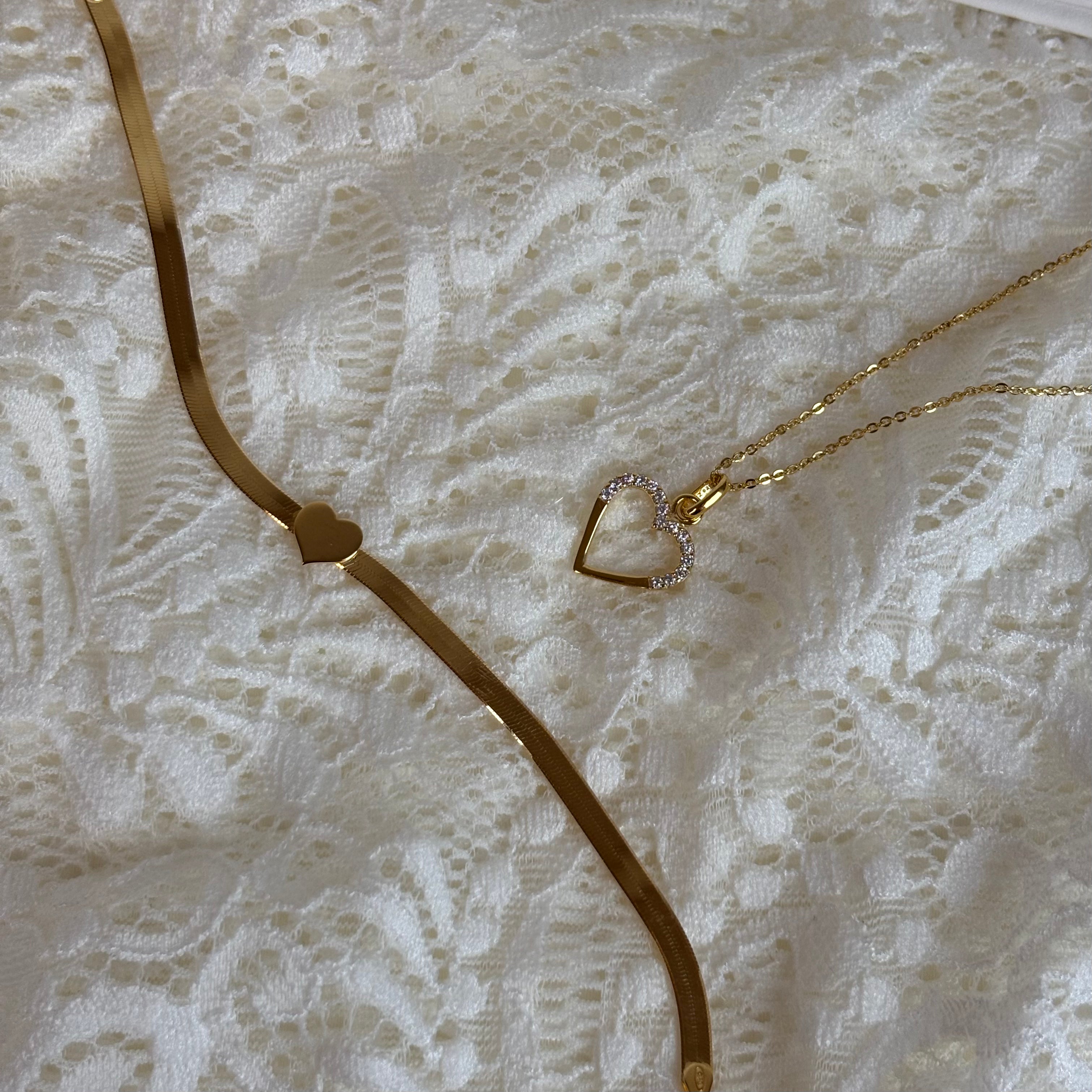 Halskæde med Vedhæng Cubic Zirkonia Hjerte Forgyldt Sterling Sølv 45 cm