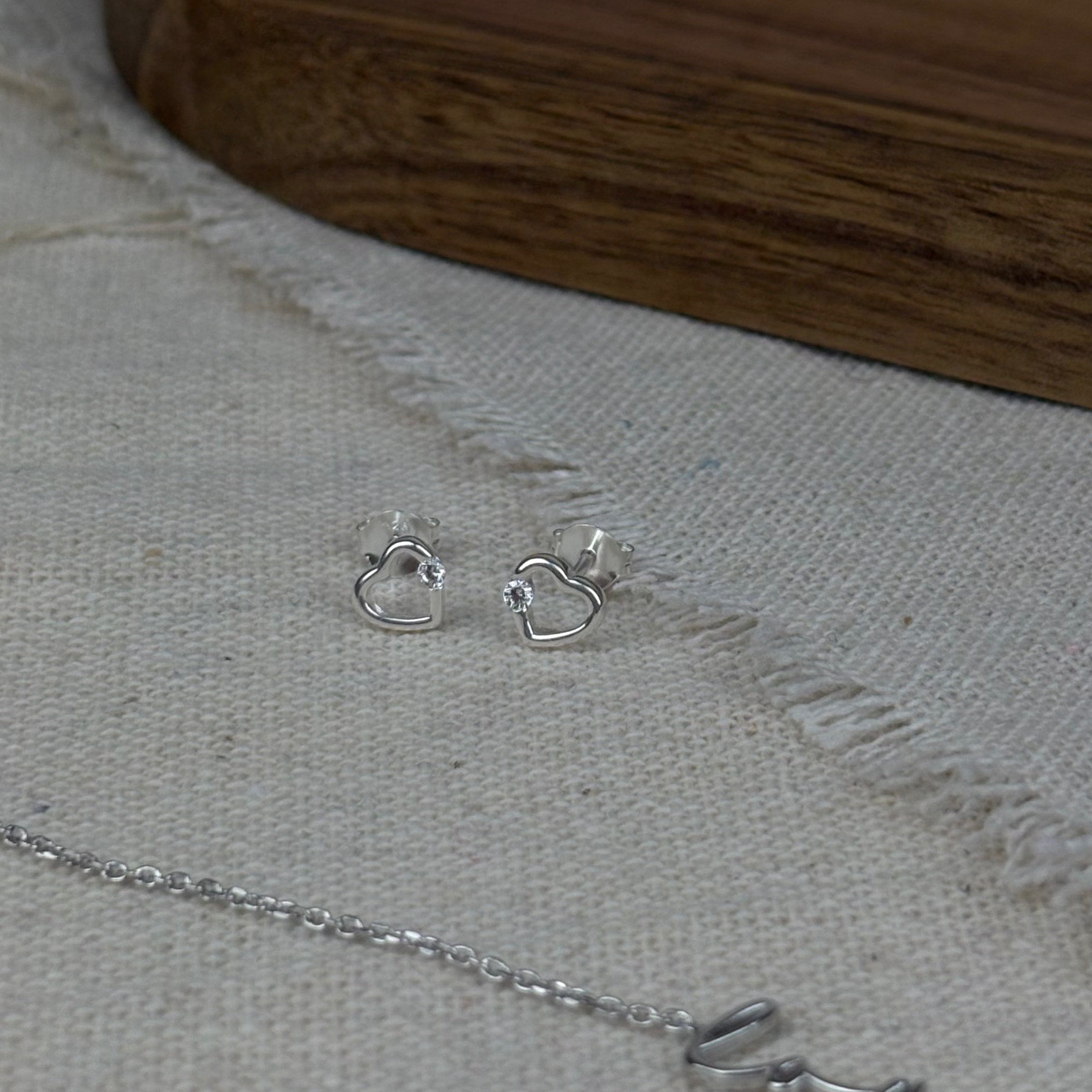 Ørestikker Hjerte med Cubic Zirkonia Sterling Sølv
