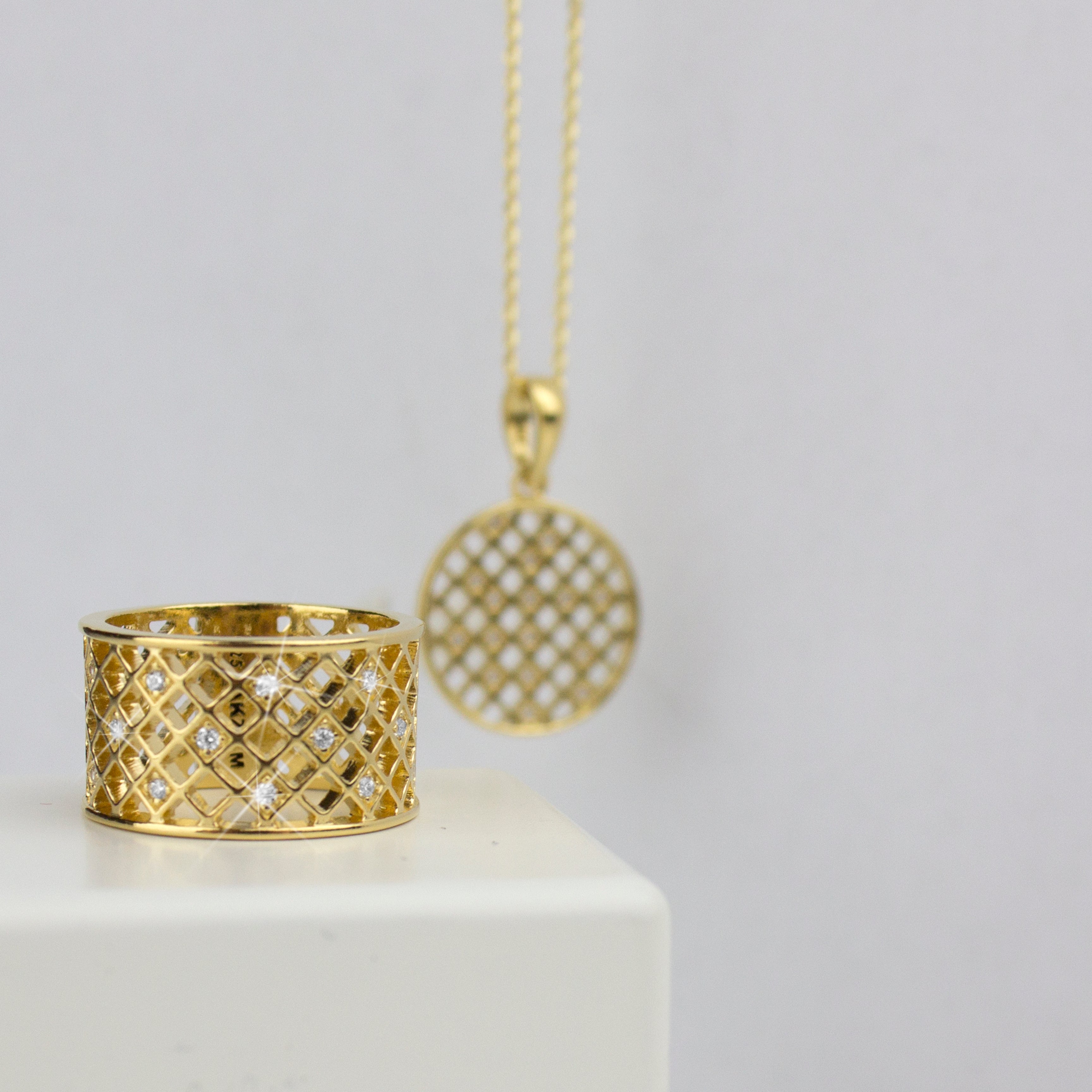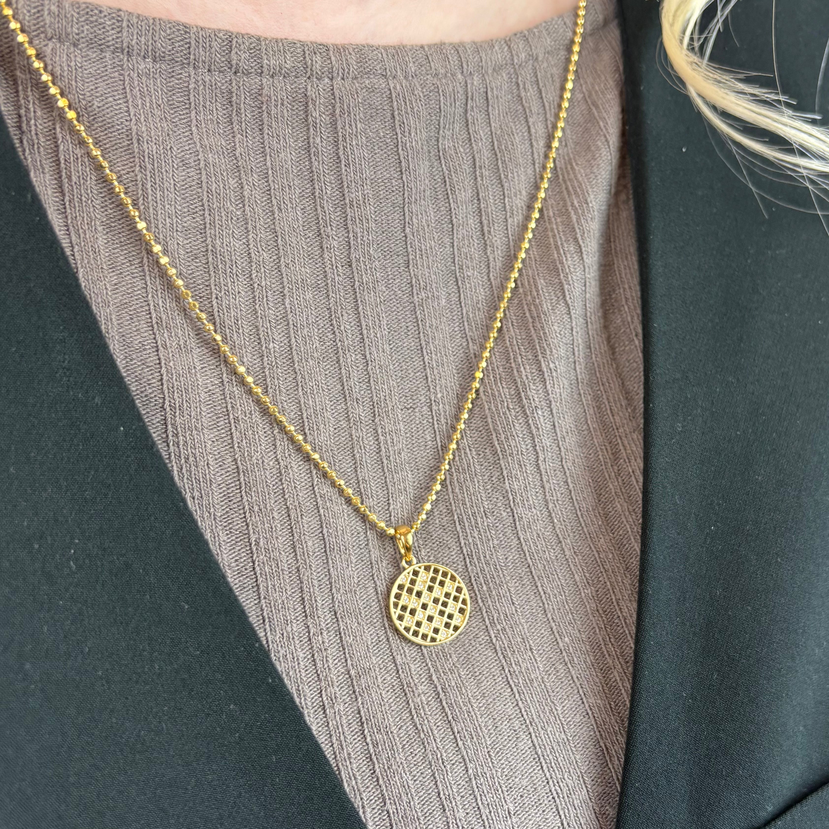 Inspireret af det klassiske Harlekinmønster kombinerer dette forgyldt sølv halskæde både Zirkonia, leg og præcision i et stærkt visuelt udtryk. Halskæden er med Zirkoniabelagt-vedhæng med det karakteristiske Harlekin-design: kontraster, geometri og rytme i perfekt balance.