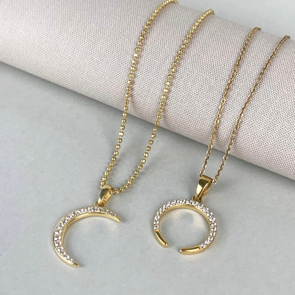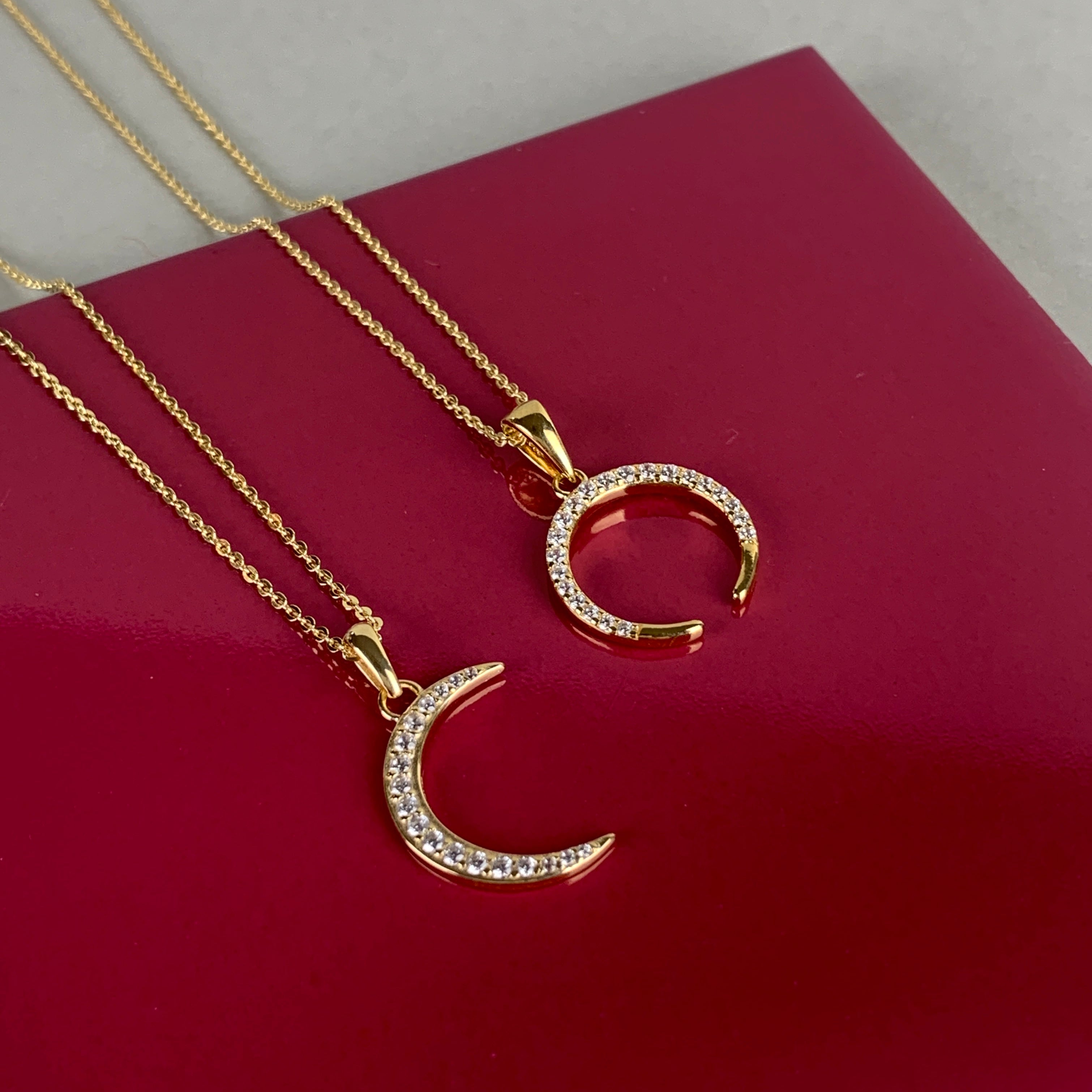 Halskæde med Vedhæng Horn med 21 Cubic Zirkonia Forgyldt Sterling Sølv 45 cm