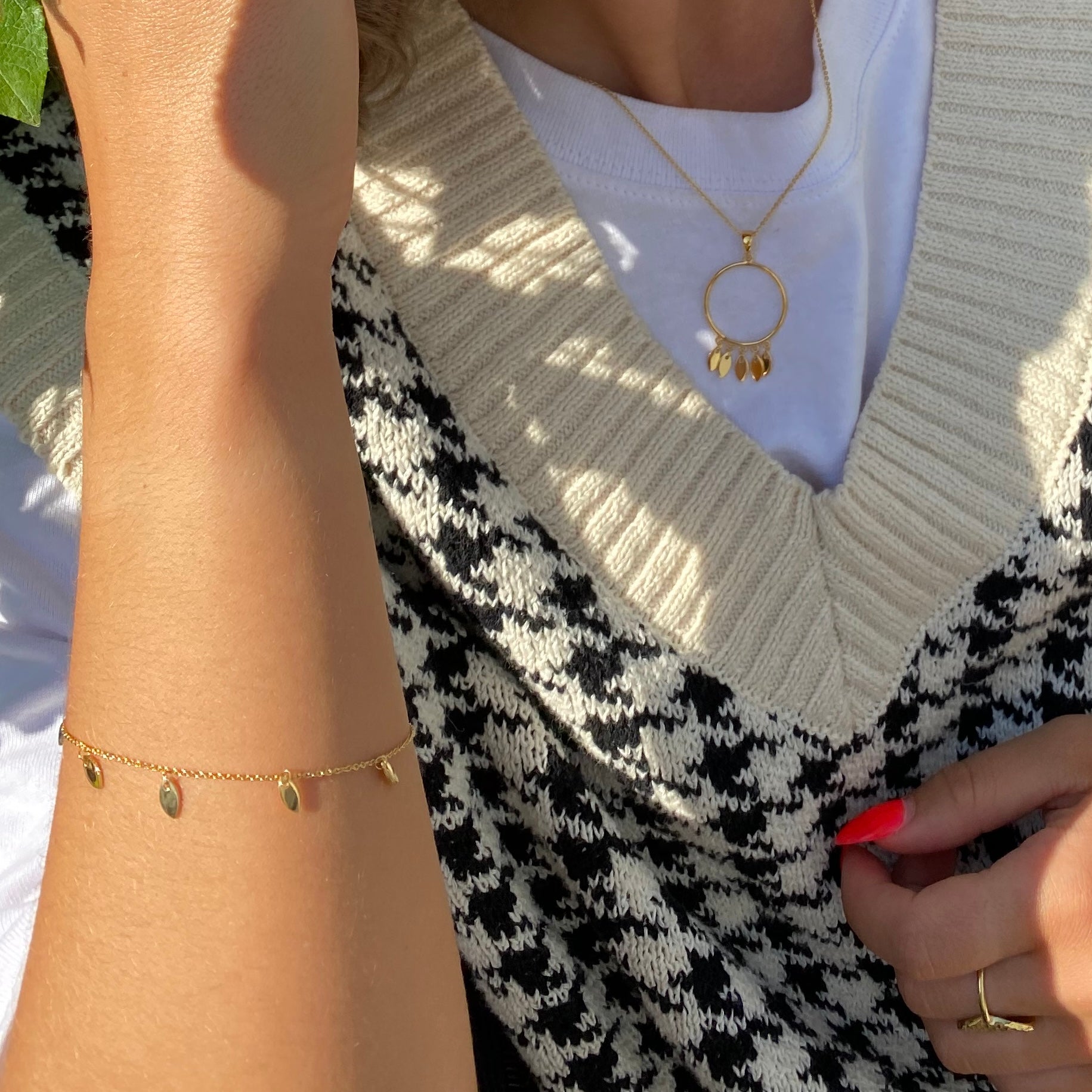 Halskæde med Vedhæng Dancing Leafs Forgyldt Sterling Sølv 45 cm