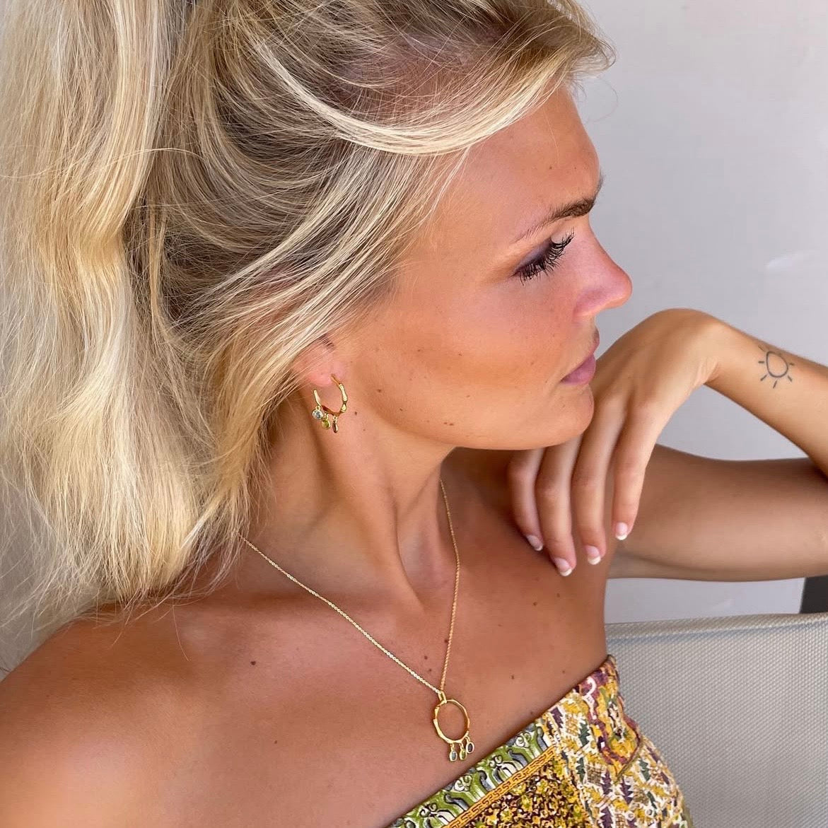 Halskæde med Vedhæng Wave It With Colors Forgyldt Sterling Sølv 45 cm