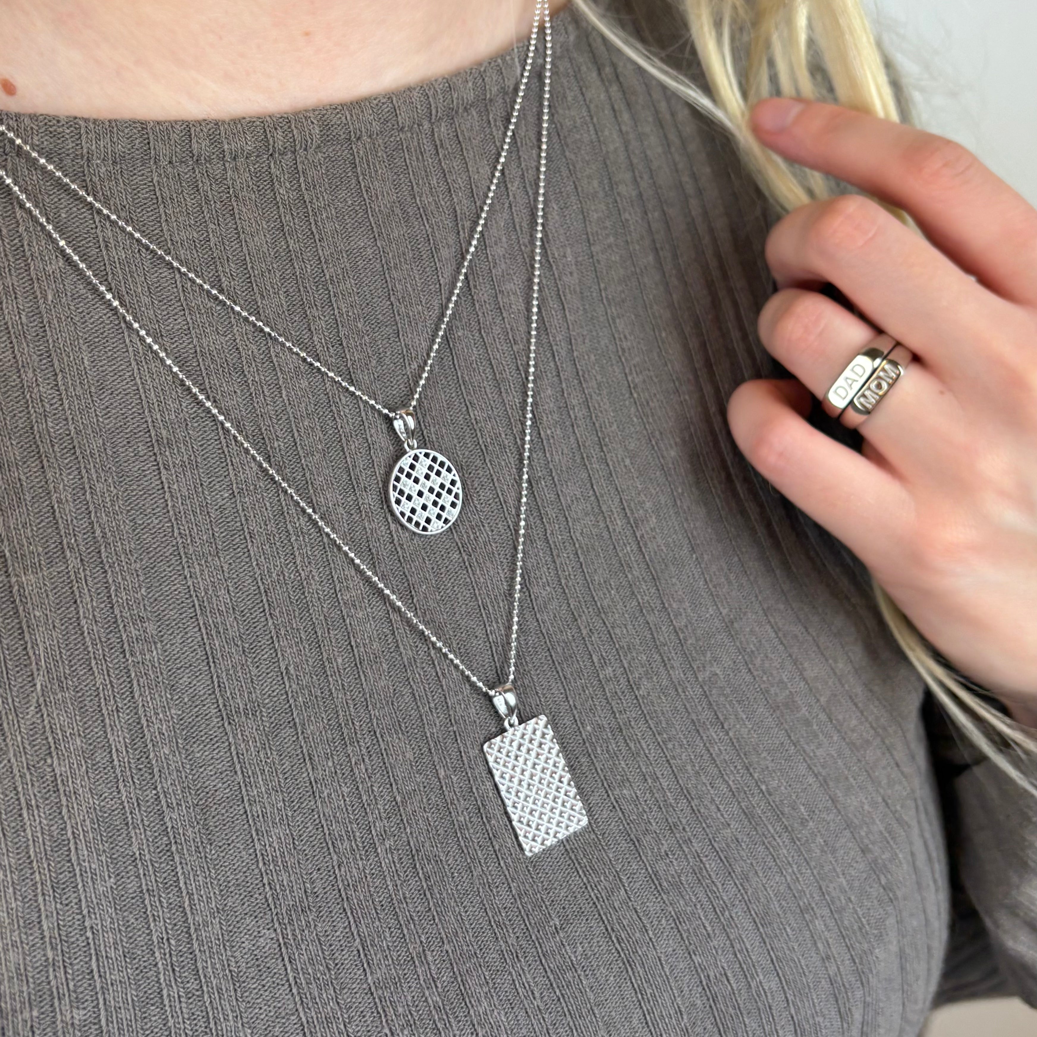 Designet er skrapt og grafisk, men stadig let og elegant - en moderne fortolkning af et tidsløst mønster. Halskæden udstråler både stil og personlighed.