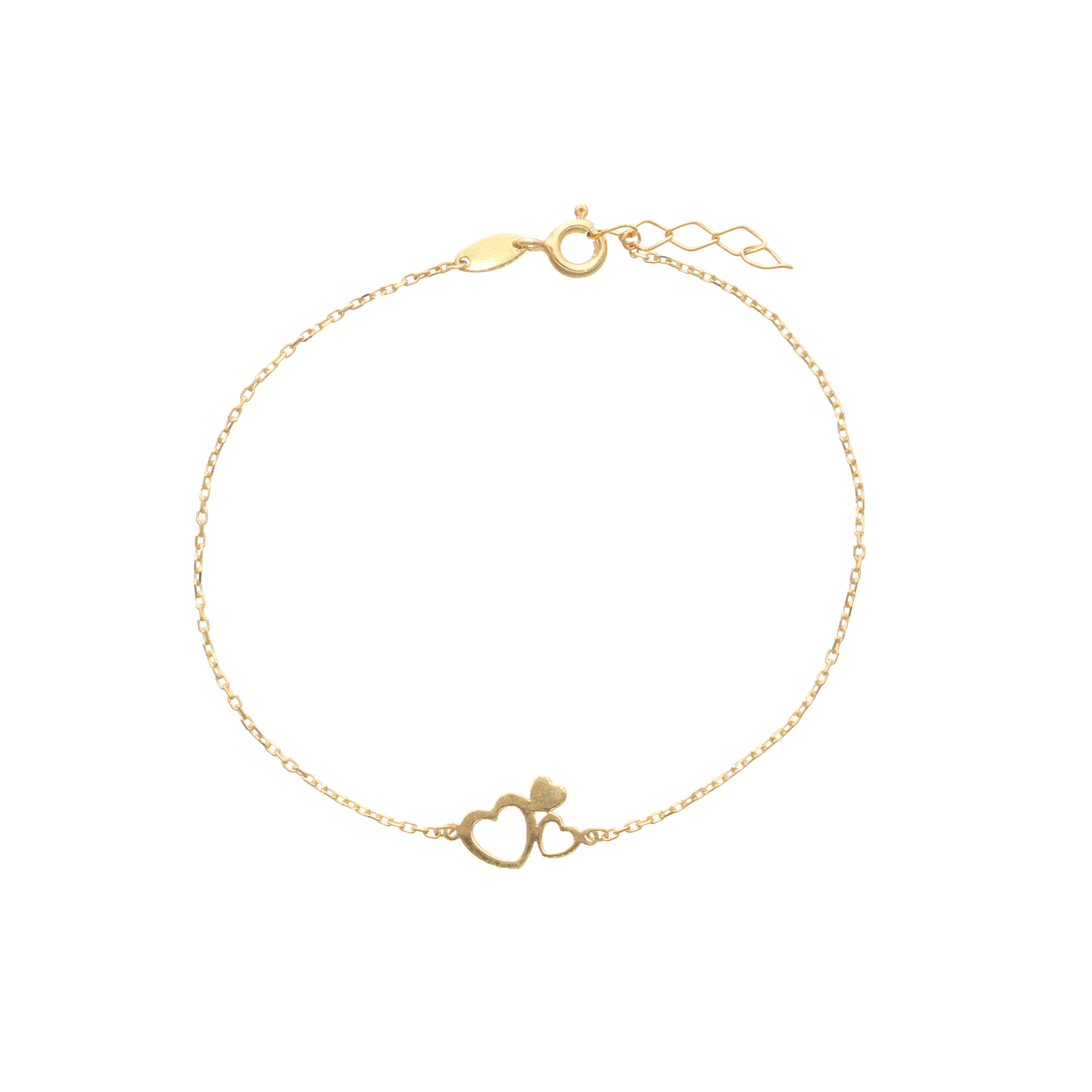 Armbånd med 3 Hjerter 8 Karat Guld 17 + 2 cm