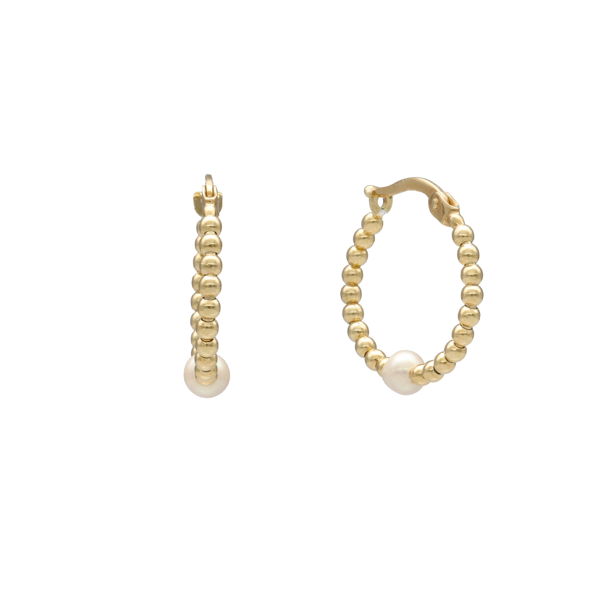 Øreringe Hjerte Kuglecreol med Perle Forgyldt Sterling Sølv