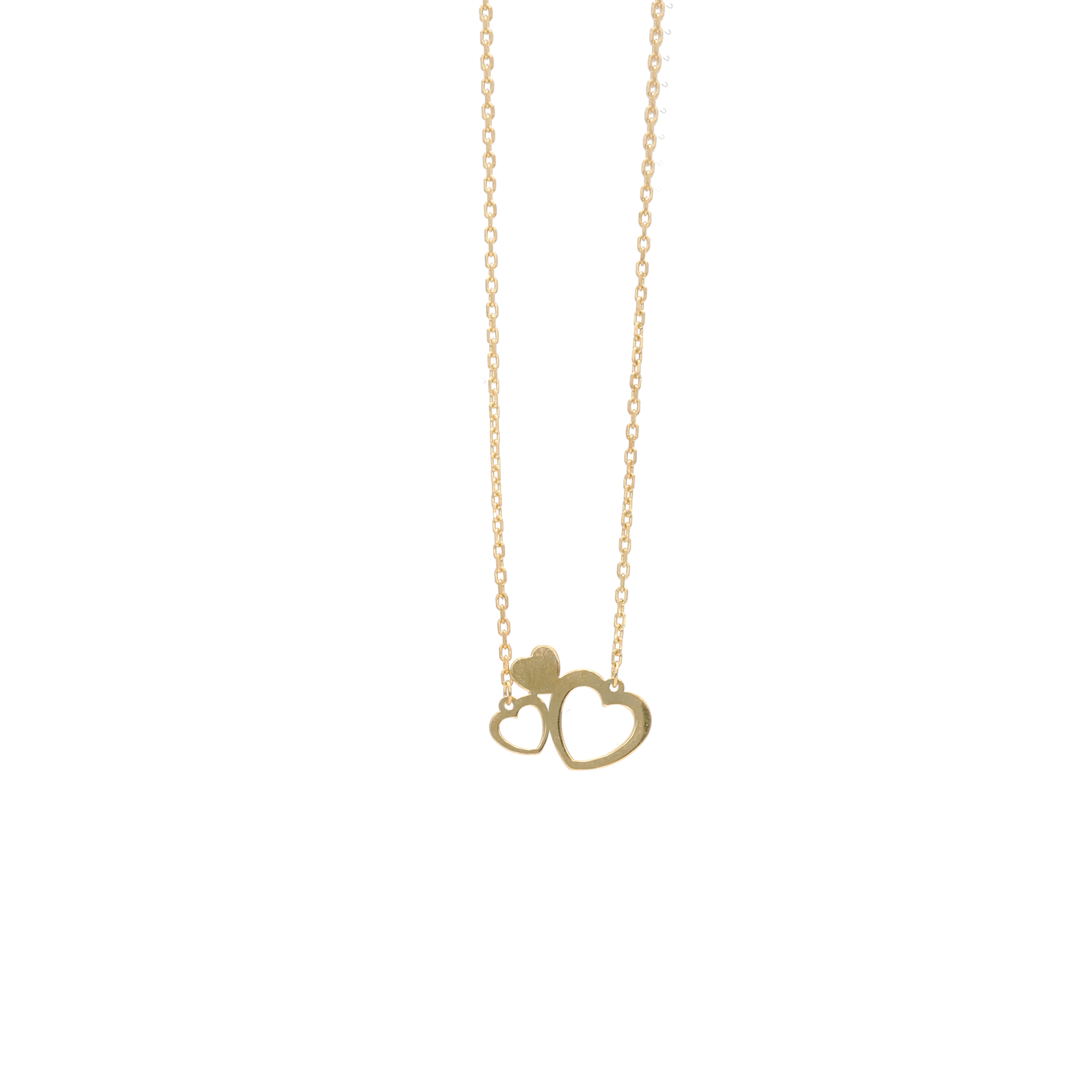 Halskæde med 3 Hjerter 8 Karat Guld Forgyldt Sterling Sølv Kæde 42 + 3 cm