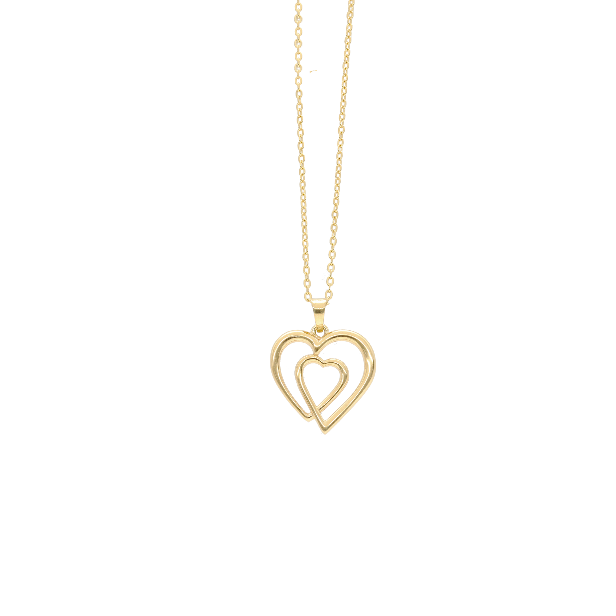 Halskæde Dobbelt Hjerte 8 Karat Guld Forgyldt Sterling Sølv Kæde 45 cm