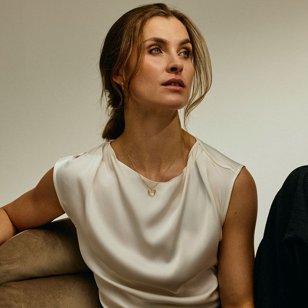 Halskæde med Vedhæng Dobbelt Hjerte Forgyldt Sterling Sølv 45 cm