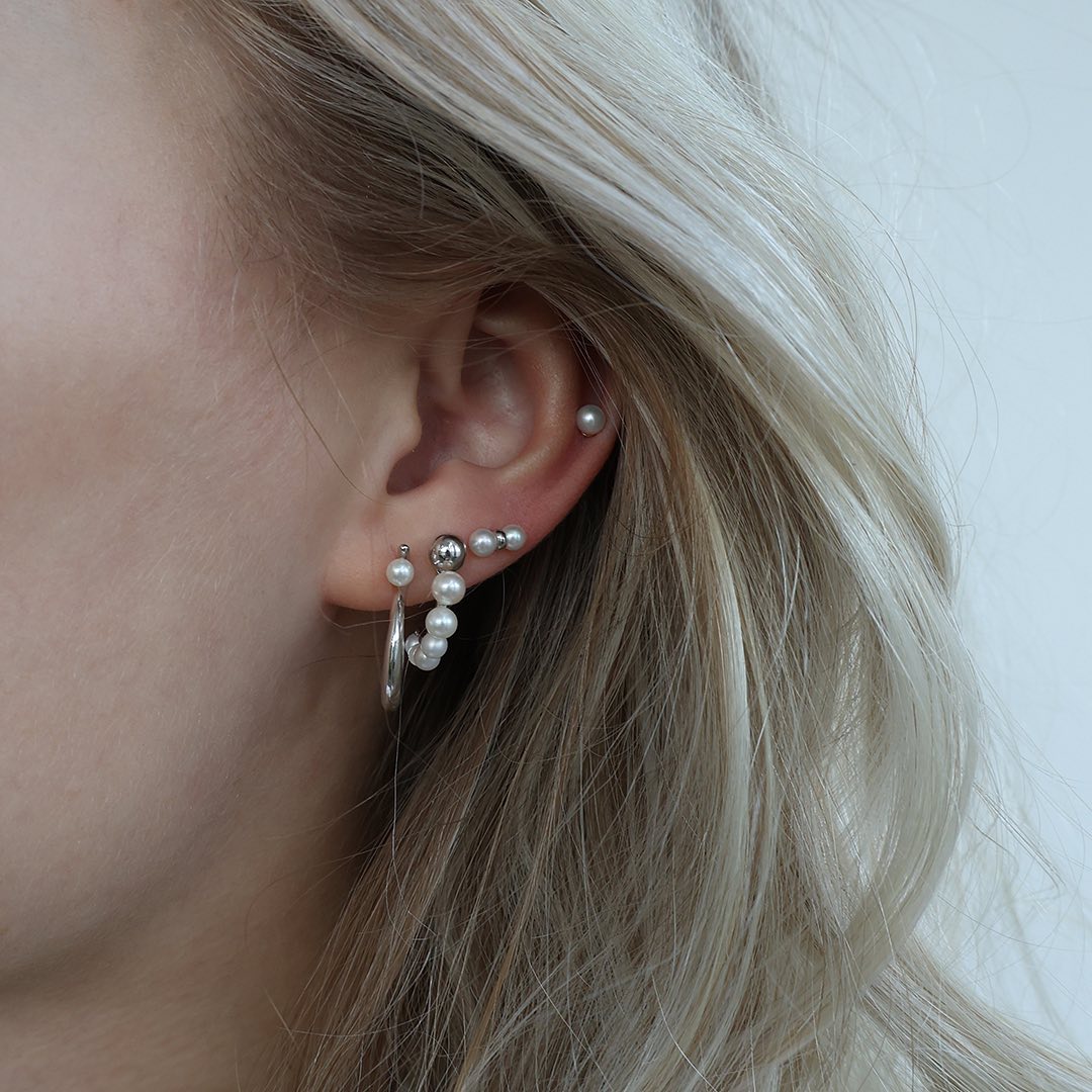 Ferskvandsperle Ørestikker Sterling Sølv 5 mm