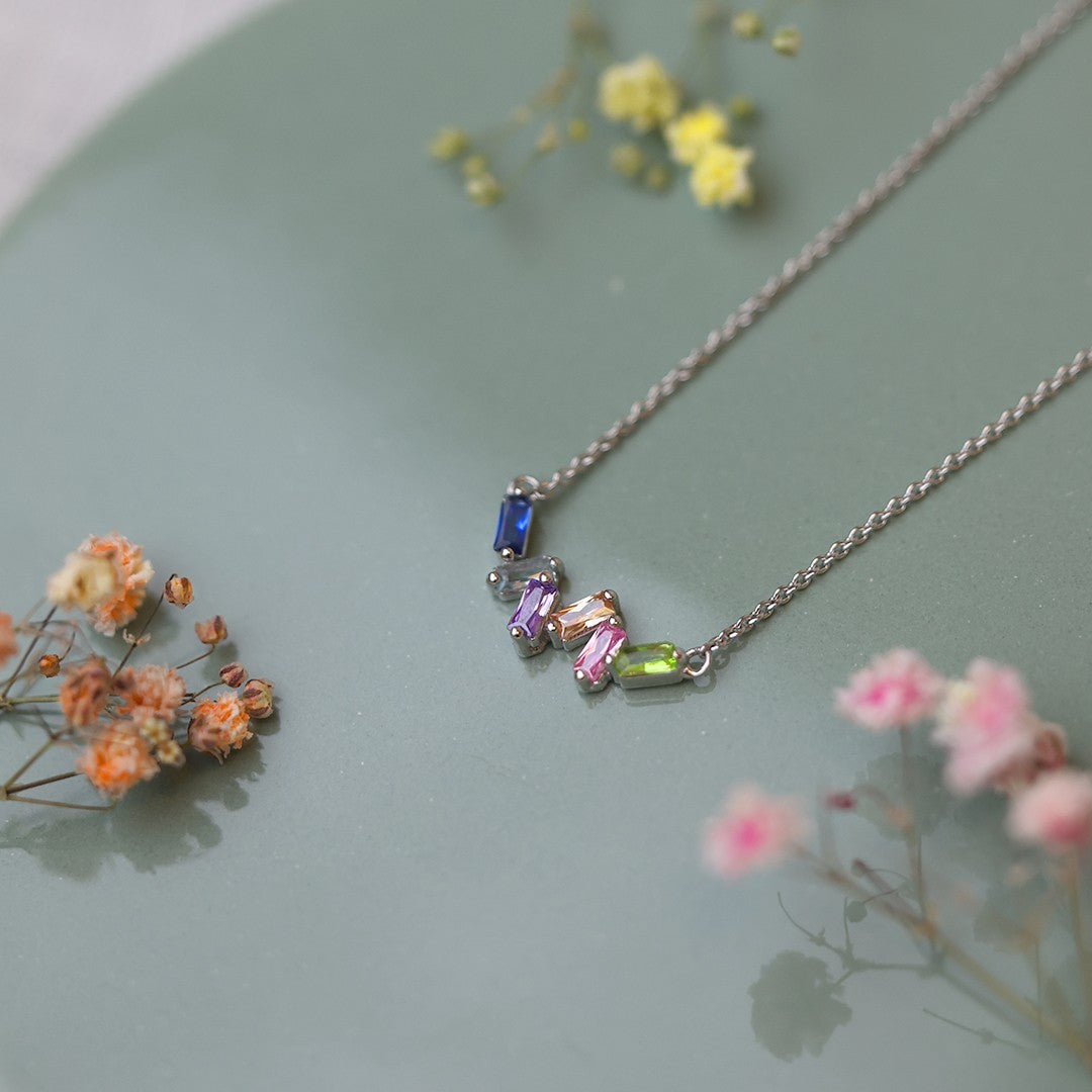 Bring glæde og farver ind i din hverdag med vores smukke sølv vedhæng prydet med en regnbue af strålende ædelstene. Dette unikke smykke fra Aagaard kombinerer elegance og lethed og er den perfekte accessory til enhver lejlighed. De livlige farver fra stenene skaber et smukt kontrastspil mod det polerede sølv, hvilket gør dette vedhæng til et ægte kunstværk. Håndlavet med omhu og opmærksomhed på detaljer, er dette vedhæng en tidløs skat, der vil forbløffe i årevis. Bær det med stolthed og lad regnbuens magi lyse op i dit liv. Køb nu for at tilføje et strejf af farve til din personlige stil. Med 45 cm sølv kæde.