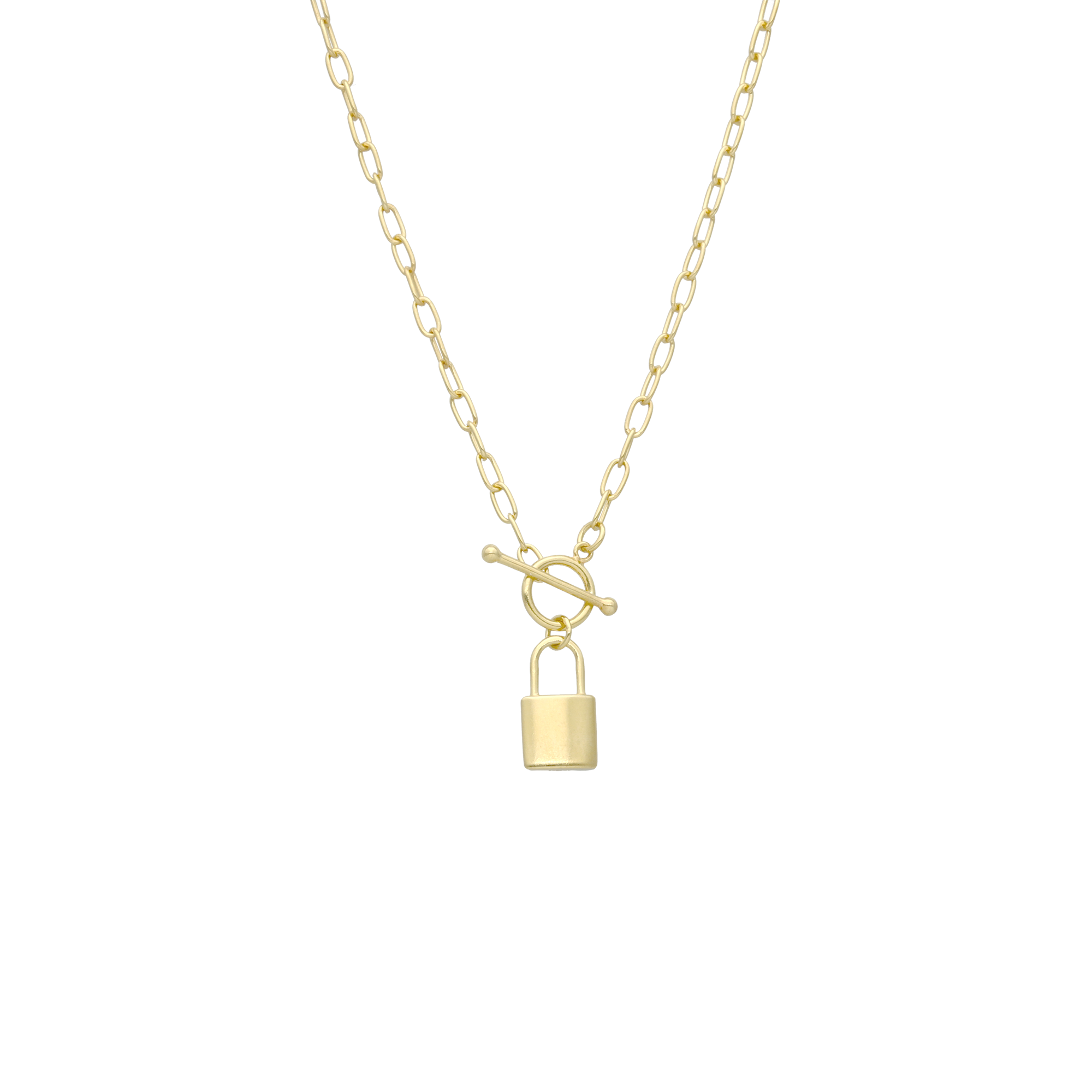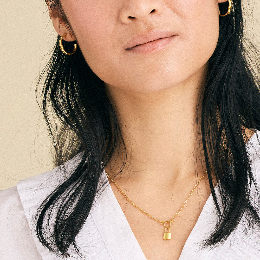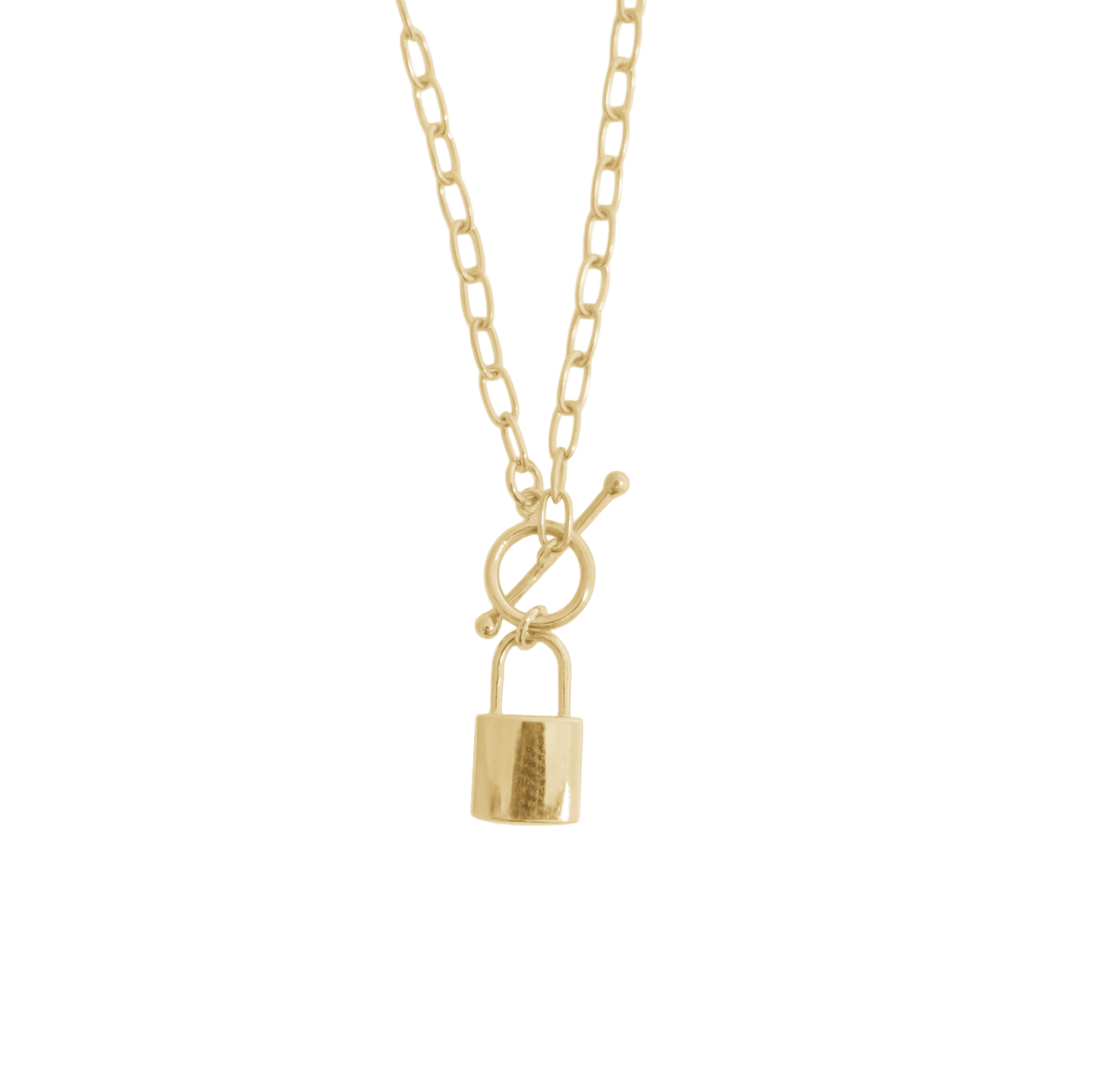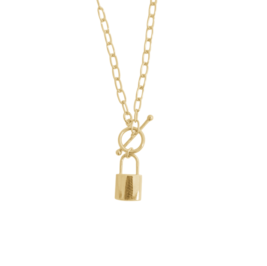 Halskæde med Vedhæng Padlock Forgyldt Sterling Sølv 12 x 8 mm