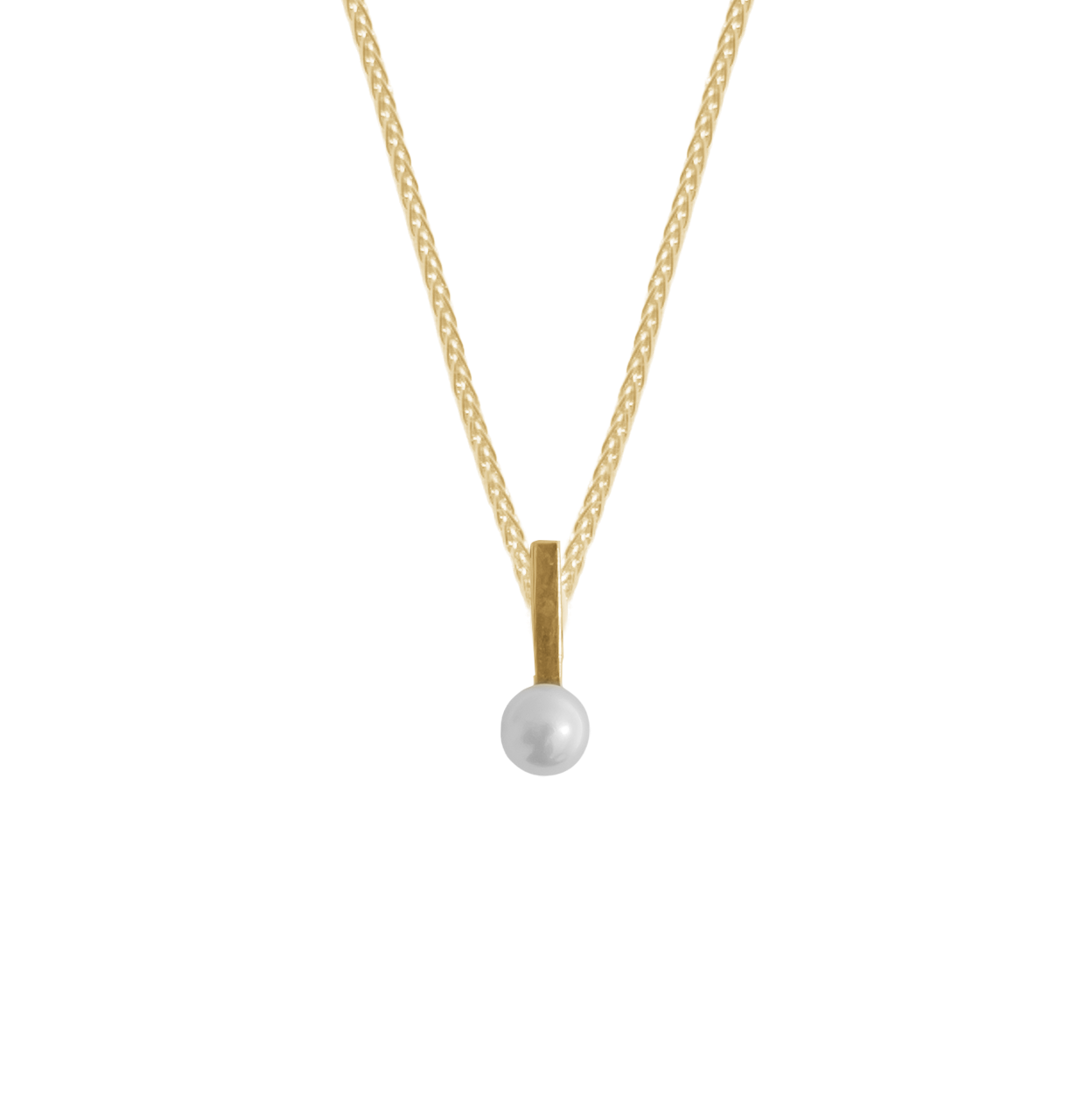 Denne elegante halskæde forener det varme skær fra 8 karat guld med den bløde glød fra en ægte ferskvandsperle. Vedhænget er enkelt, men fuld af karakter – en lille perle, der hviler smukt i det forgyldte guld og skaber et udtryk af naturlig raffinement.