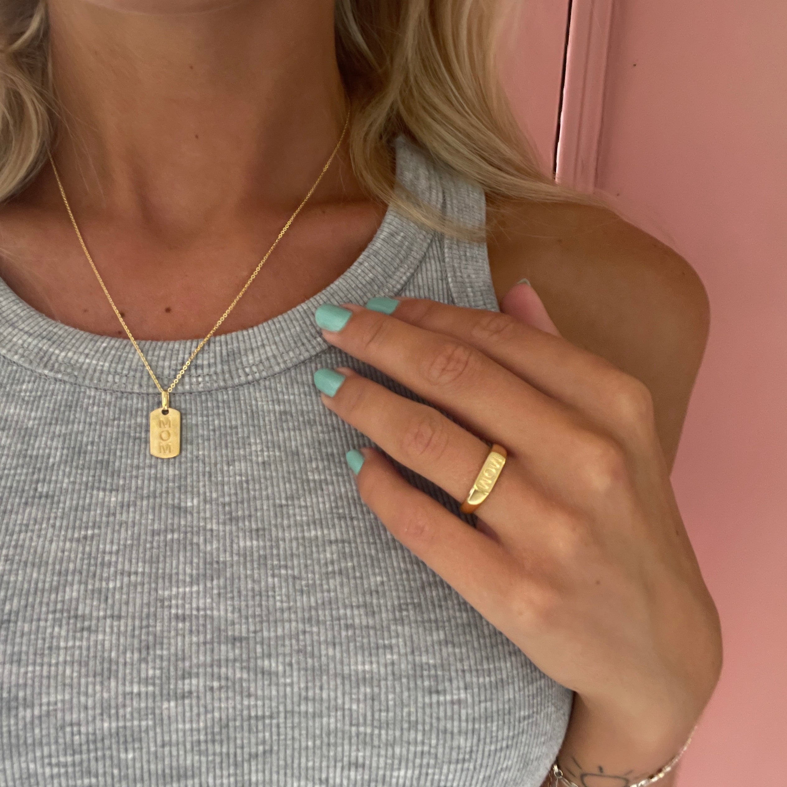 Halskæde med Vedhæng MOM Forgyldt Sterling Sølv 45 cm