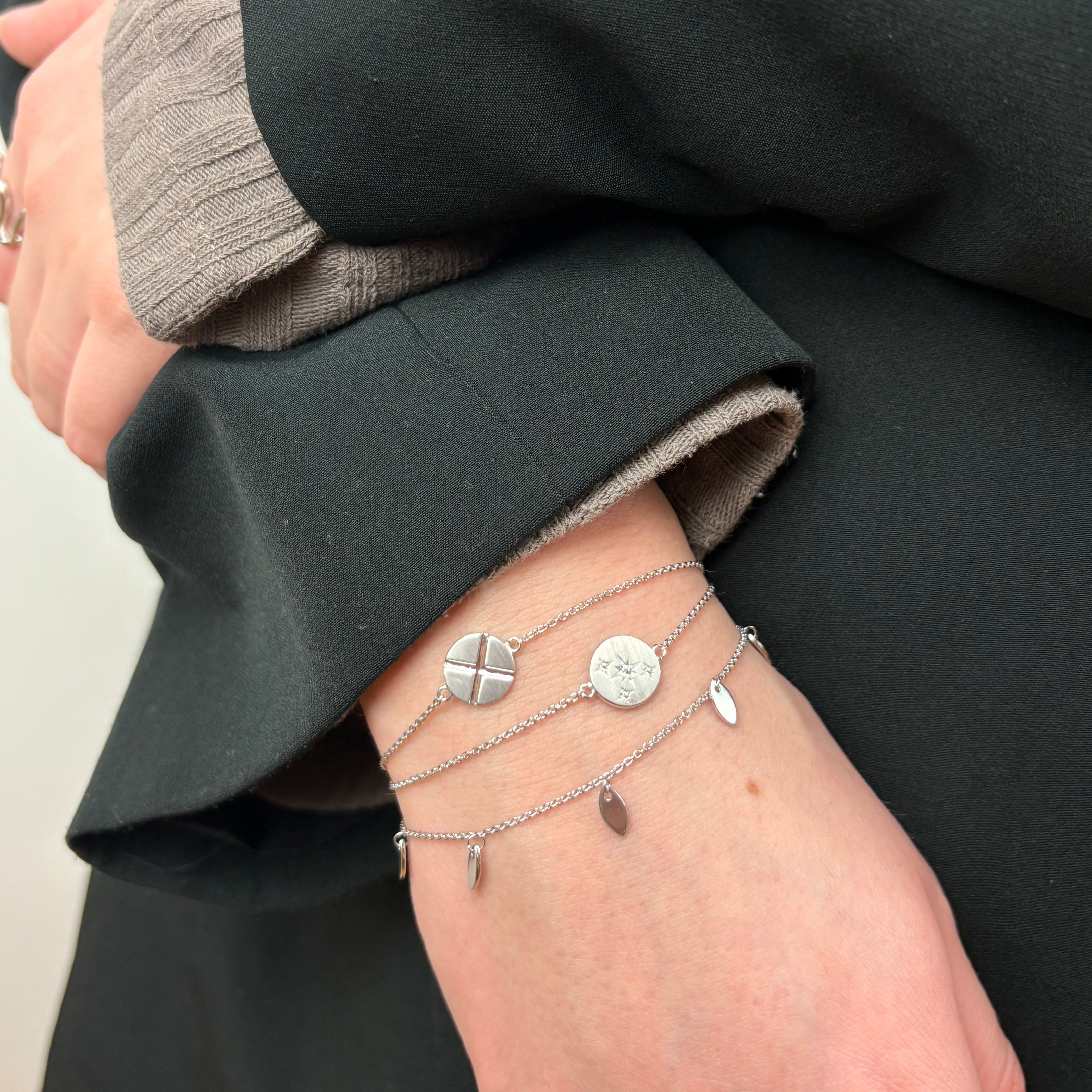 Smykket kombinerer klassisk design med en moderne, symbolsk twist og fungerer som et diskret, men meningsfuldt accessory.
