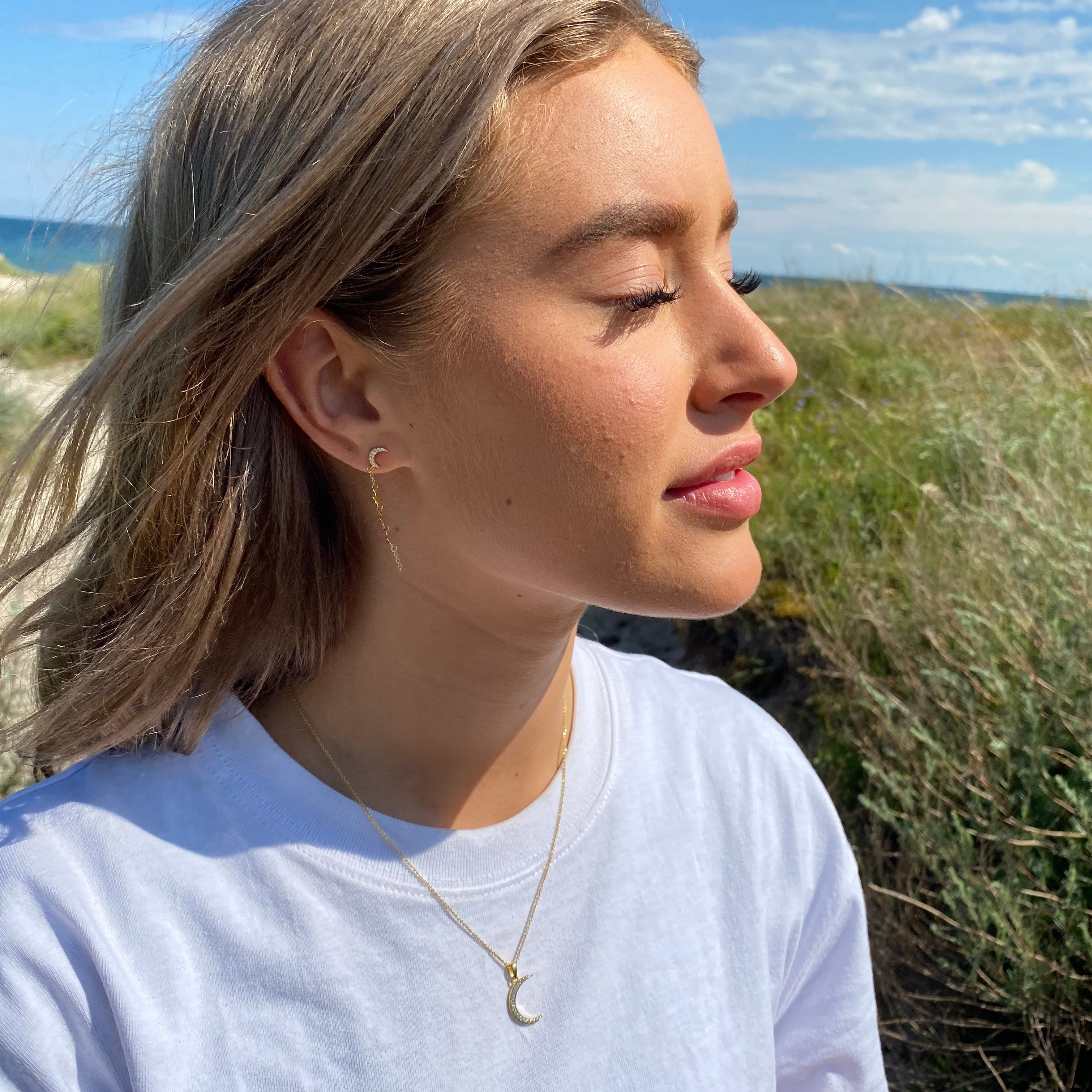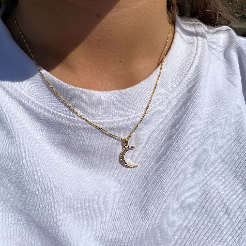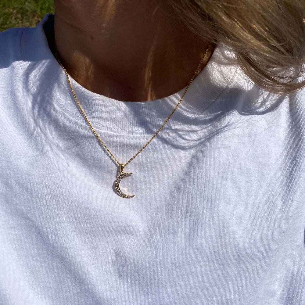 Halskæde med Vedhæng Moon Cubic Zirkonia Forgyldt Sterling Sølv 45 cm